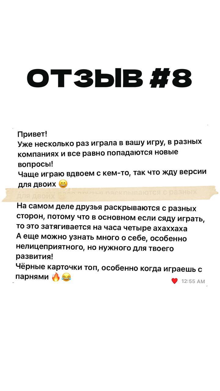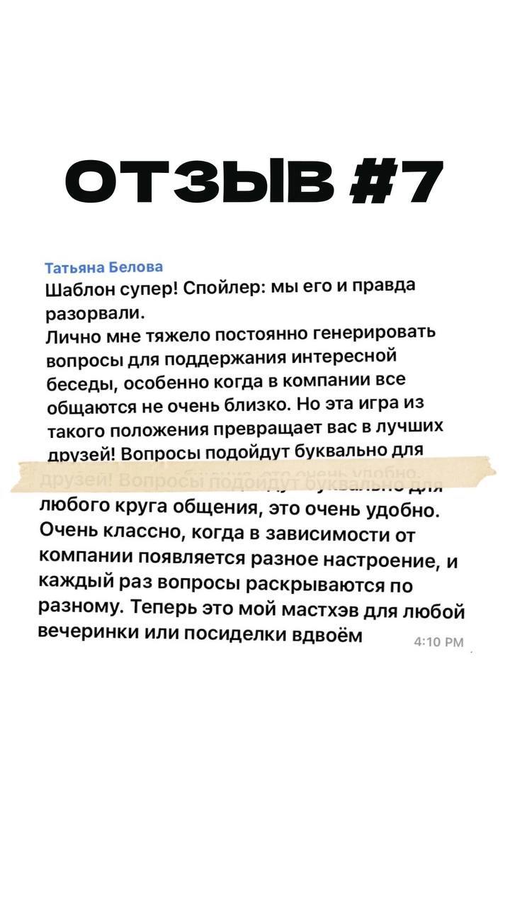 — направлены на сближение, затрагивают темы, которые часто опускаются в диалогах, они помогают взглянуть на человека заново.
